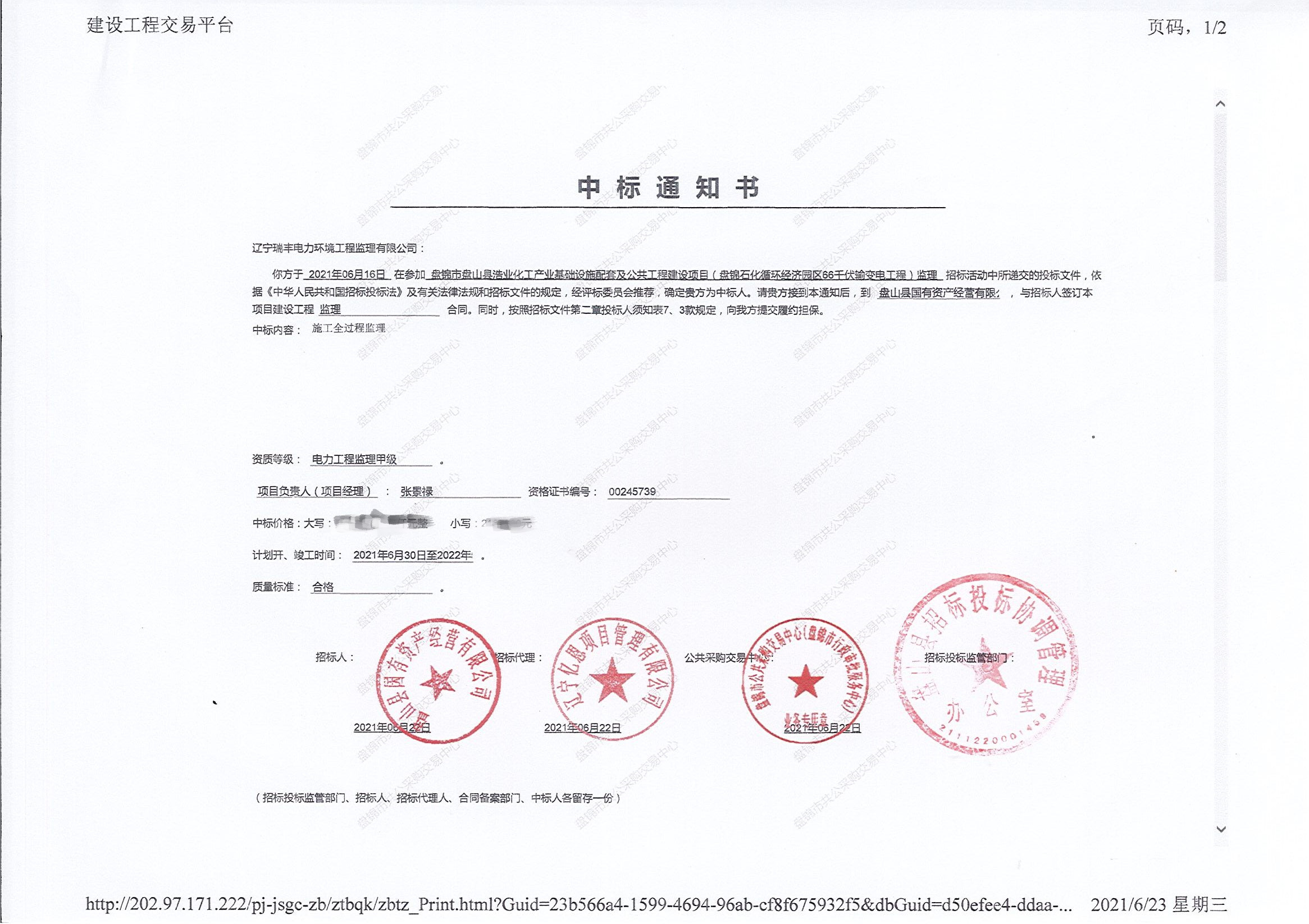 中標喜訊-盤錦市盤山縣浩業(yè)化工產(chǎn)業(yè)基礎設施配套及公共工程建設項目(盤錦石化循環(huán)經(jīng)濟園區(qū)66千伏輸變電工程)監(jiān)理