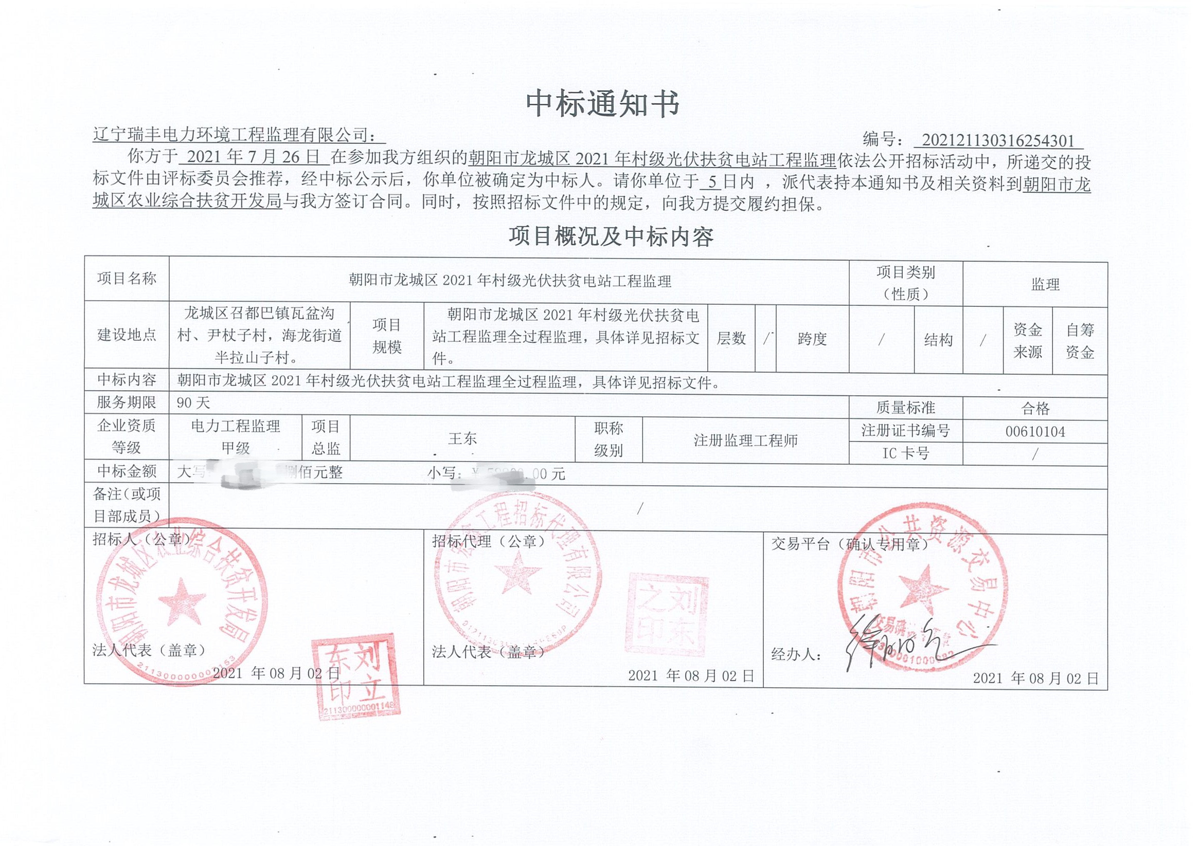 中標喜訊-朝陽市龍城區(qū)2021年村級光伏扶貧電站工程監(jiān)理