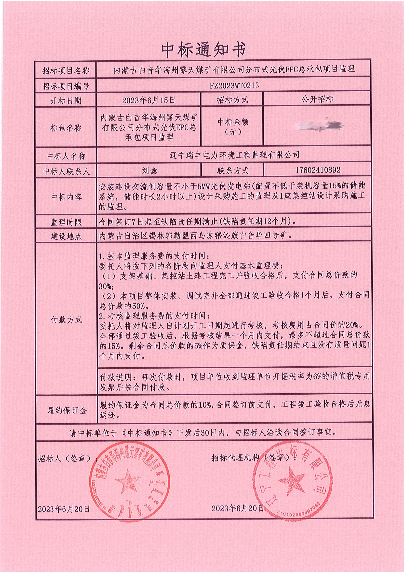 中標(biāo)喜訊-內(nèi)蒙古白音華海州露天煤礦有限公司分布式光伏EPC總承包項目監(jiān)理